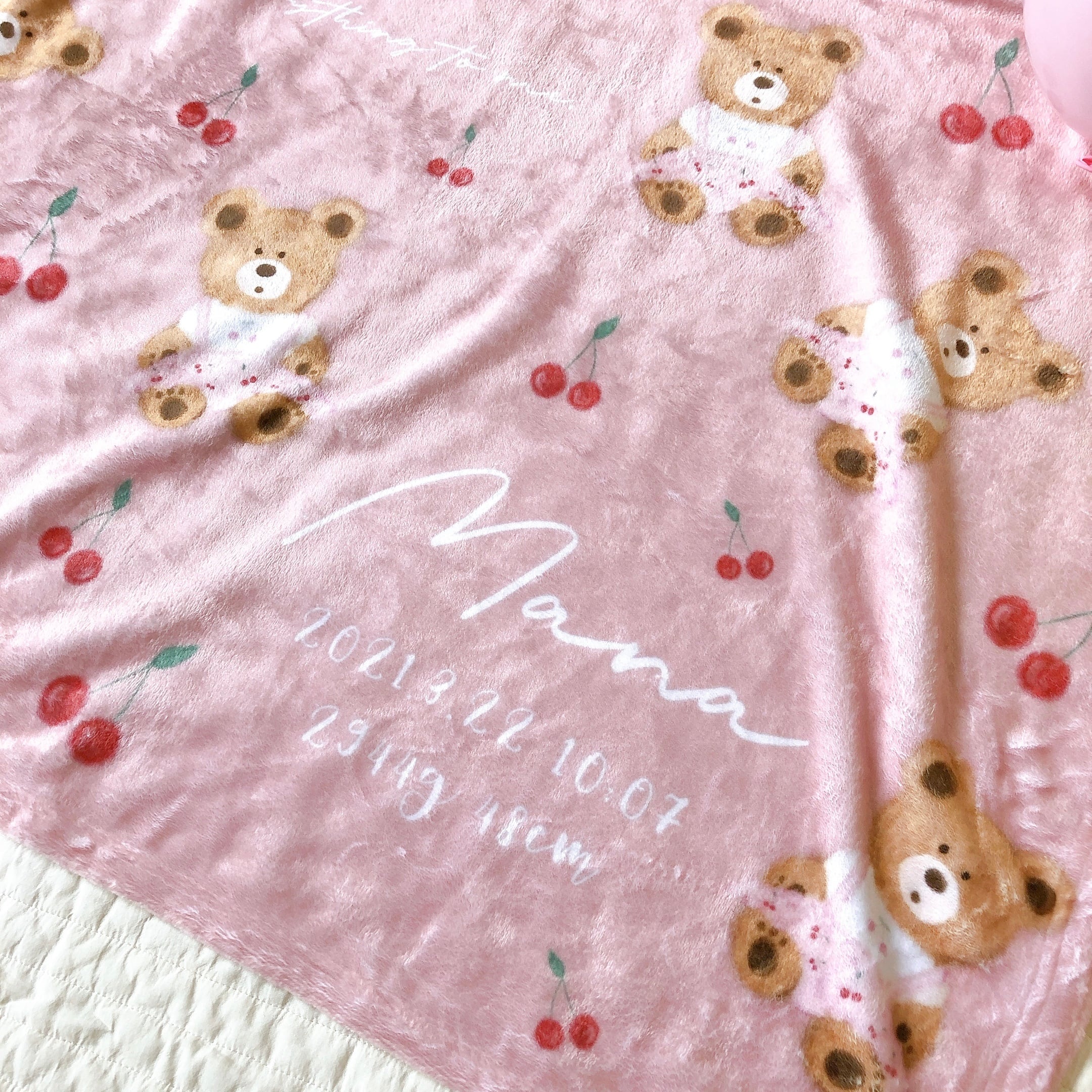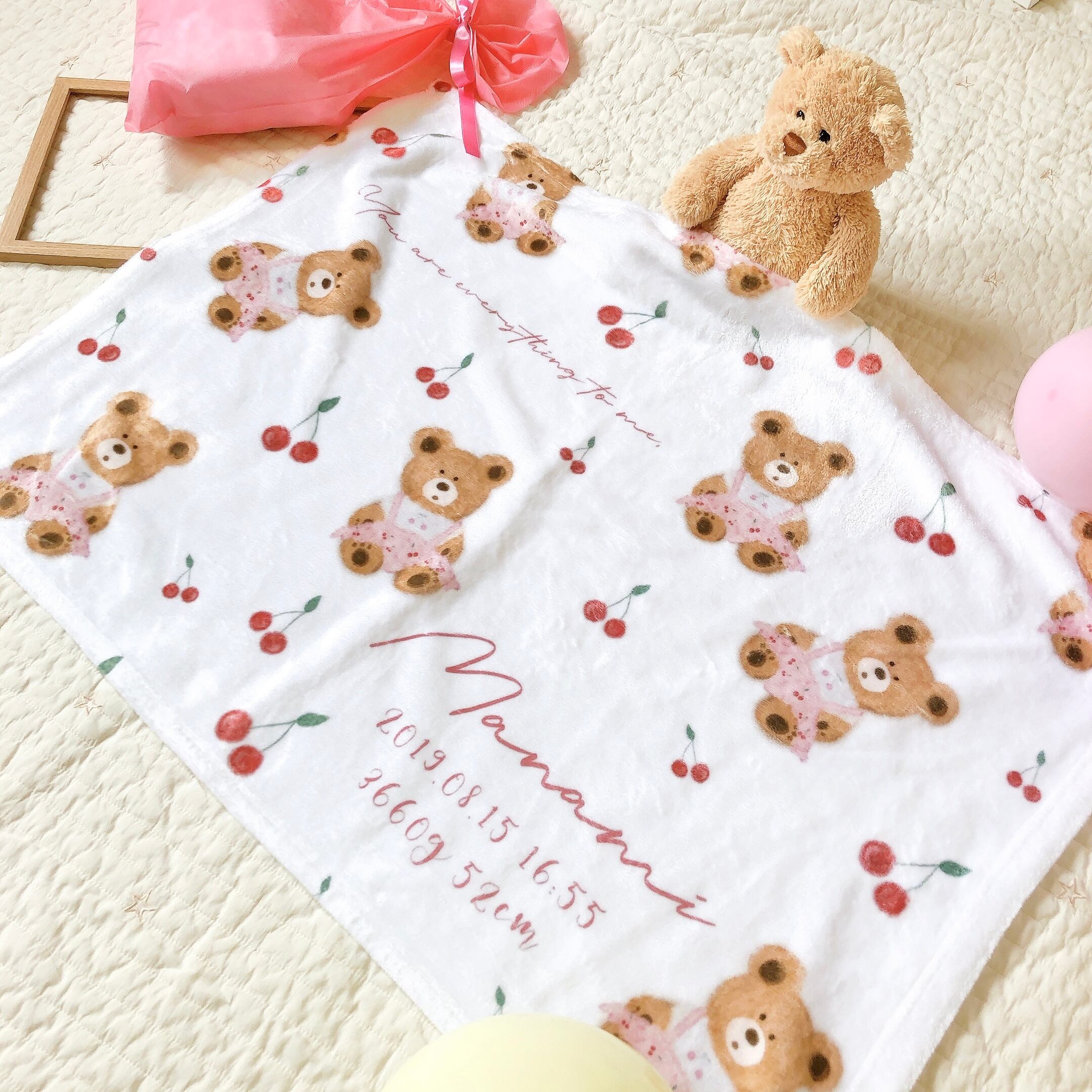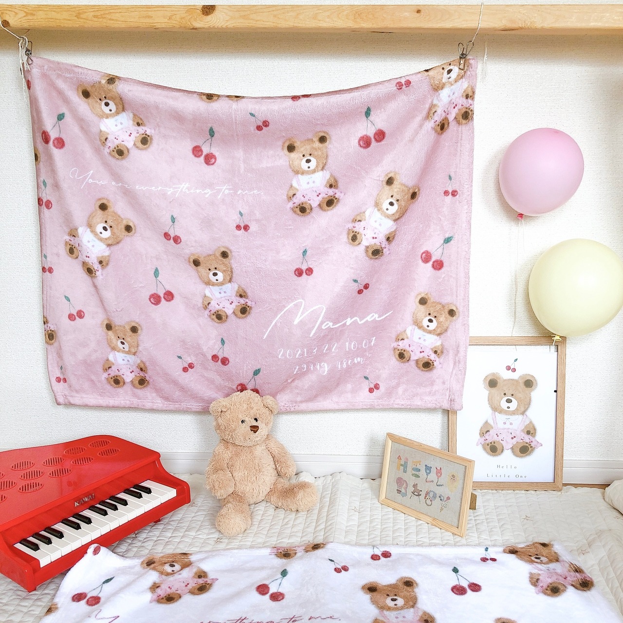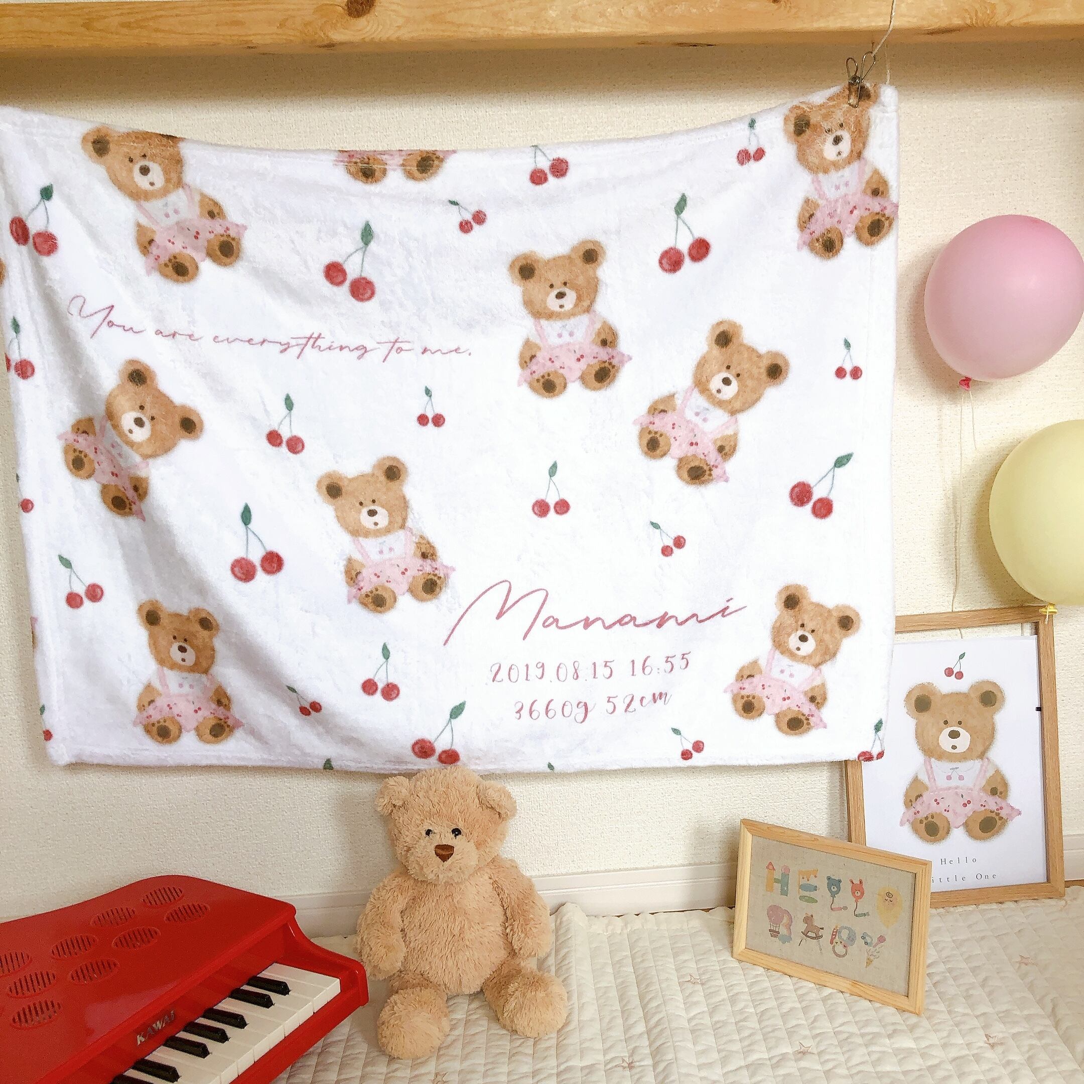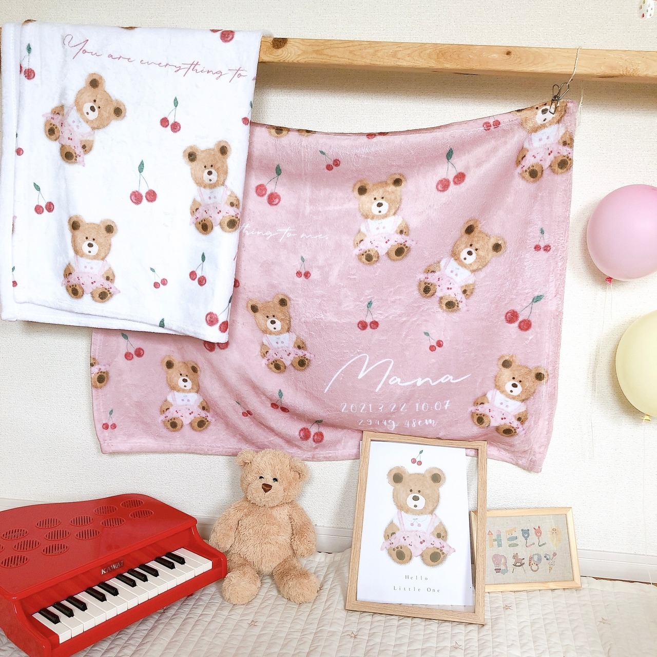 細かいところですが…くまの女の子は、さくらんぼ柄のお洋服を着ています♪