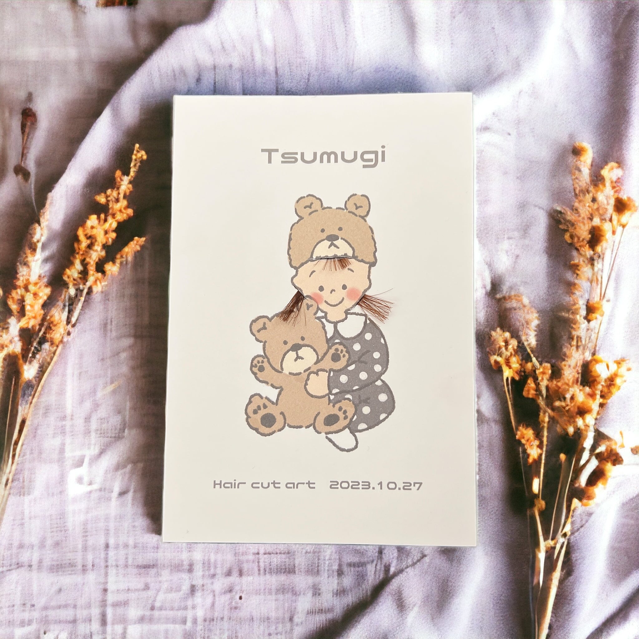 ファーストヘアカットアート(くまの帽子とぬいぐるみ)